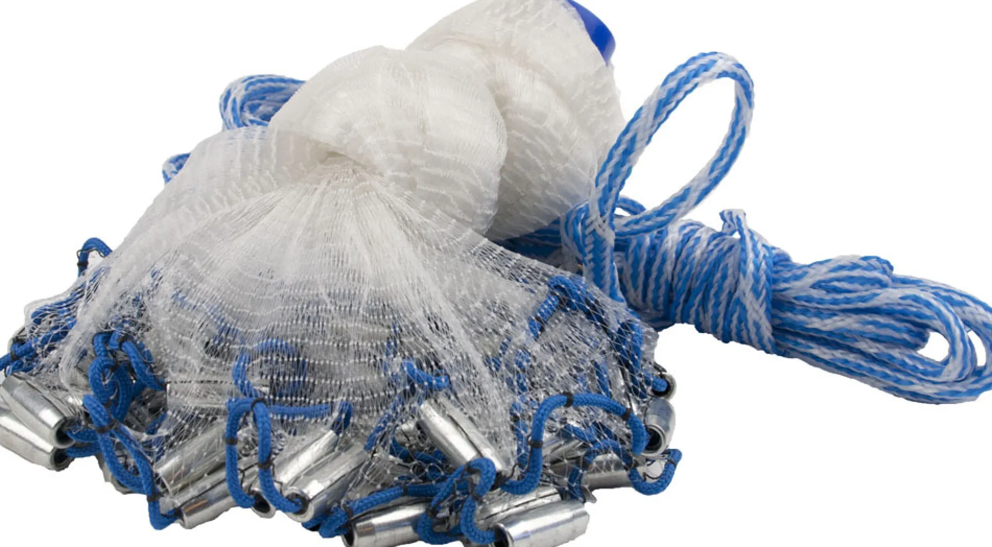 Heittoverkko 3 m halkaisijalla, 6 mm silmukoilla ja sinkkipainoilla.