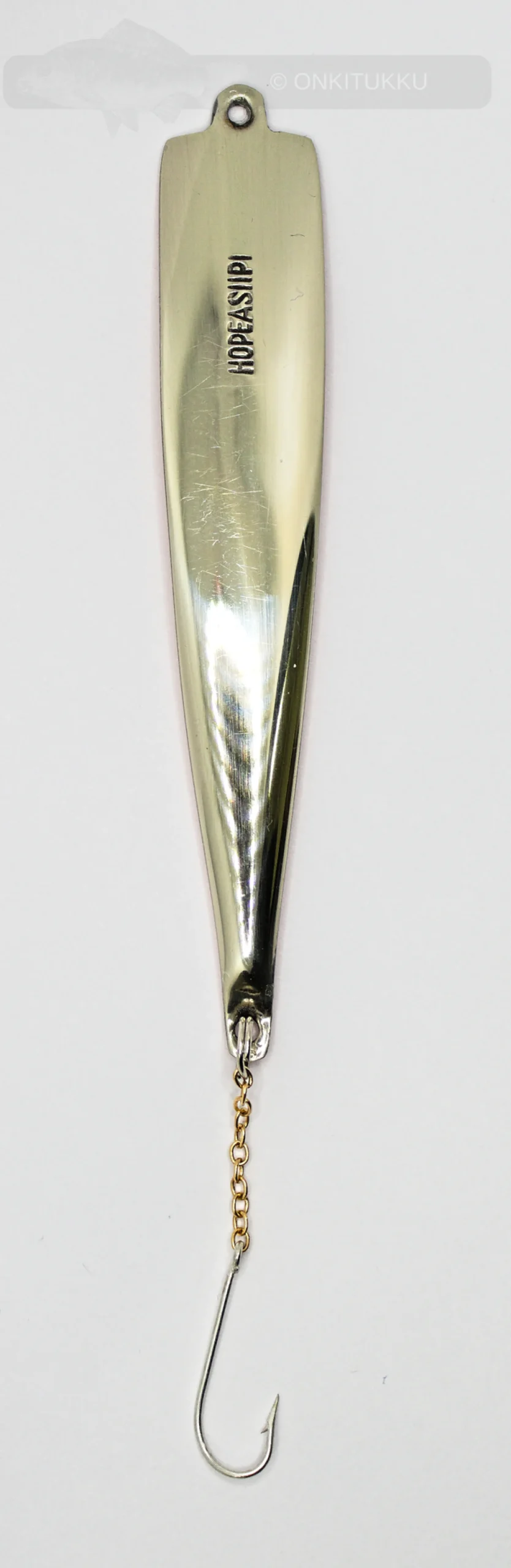 Hopeasiipi on jo ollut pitkään venepilkkijöiden suosiossa. Kiilamainen muotoilu ja hyvä painojakauma saa pilkin uppoamaan nopeasti. Pilkki toimii myös erinomaisesti kalastettaessa hitaasti ajelehtivasta veneestä. Pilkin saa uimaan melko laajalti kun nykäisee kohtalaisen kovaa. Syvissä vesissä tämä pilkki uppoaa nopeasti ja toimii talvella isojen kalojen jahdissa. Pilkissä on vakiona kirkas ketjukoukku. Puustjärvi on valmistanut pilkkejä jo 50-luvulta asti.
