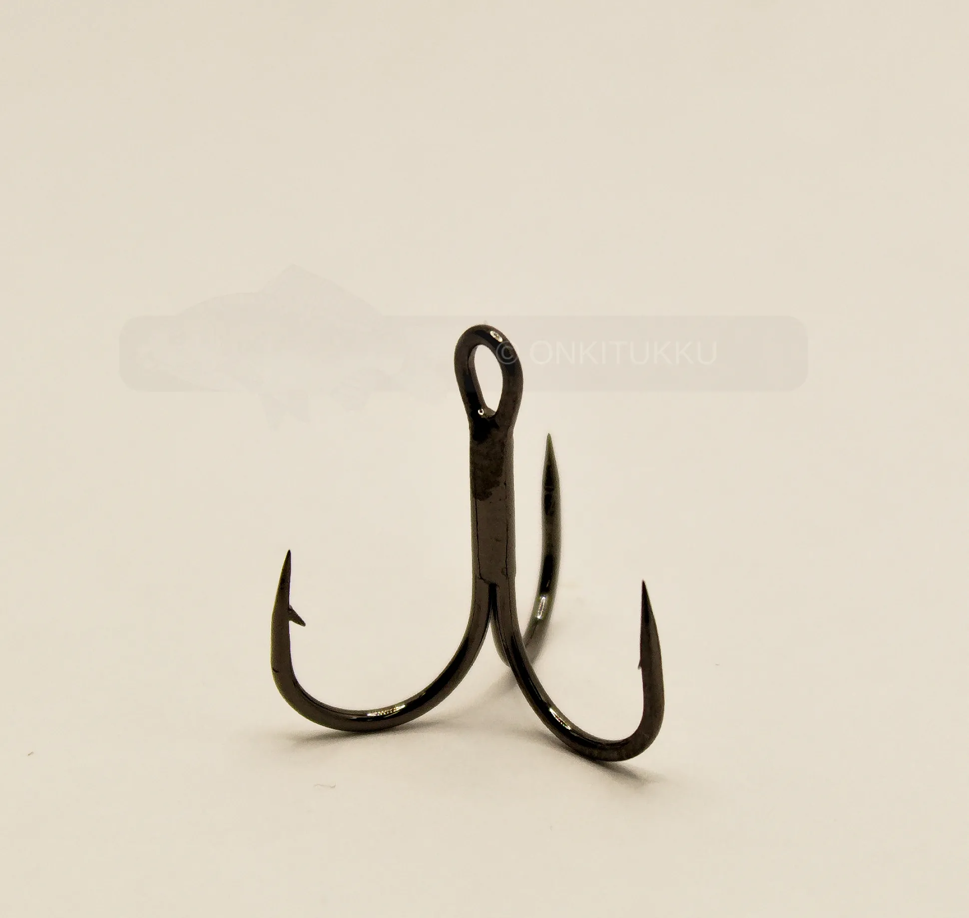Isokitainen lyhytvartinen kolmihaarakoukku Valmistettu hiiliteräksestä ja kemiallisesti teroitettu. Väri on musta.