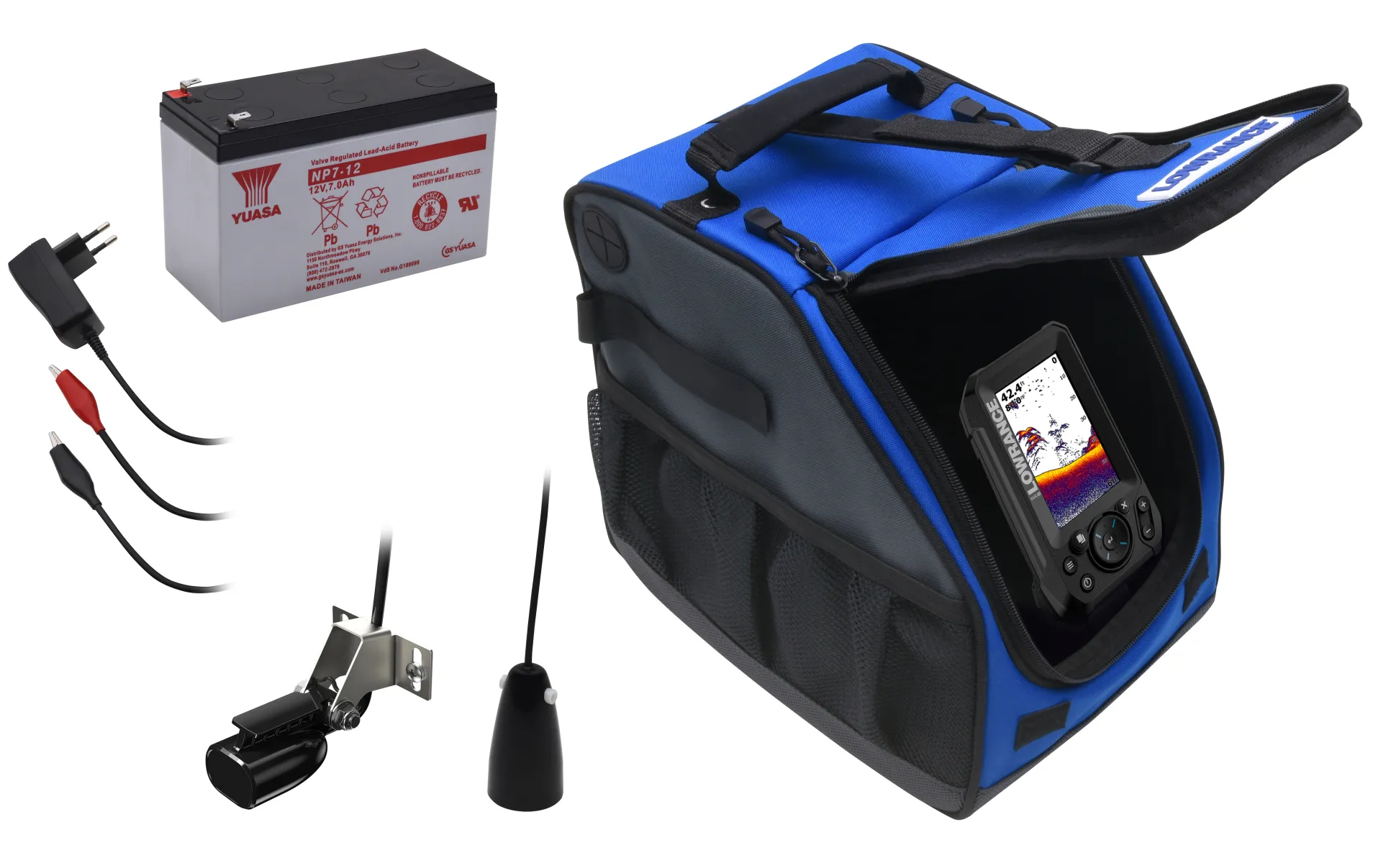 Eagle 4x All Season tuotepakkaus on erittäin kattava ja se sisältää mm. Akun, laturin, kantolaukun, asennustarvikkeet, sekä kaksi eri kaikuanturia: Veneanturin sekä pilkkianturin.