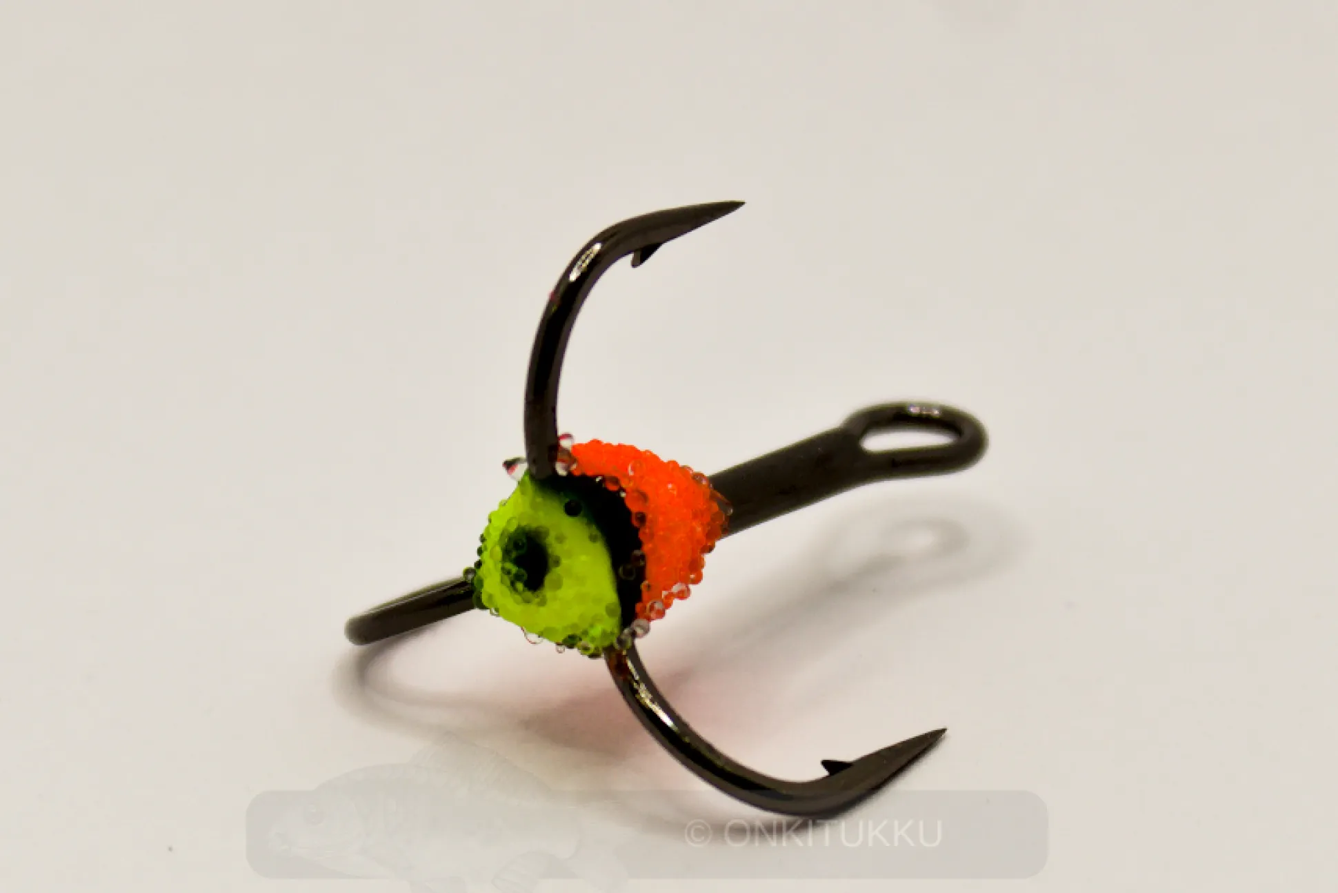 Suureen suosioon nousseet kotimaiset mätikoukut. Väritipan päällä lasihelmiä.