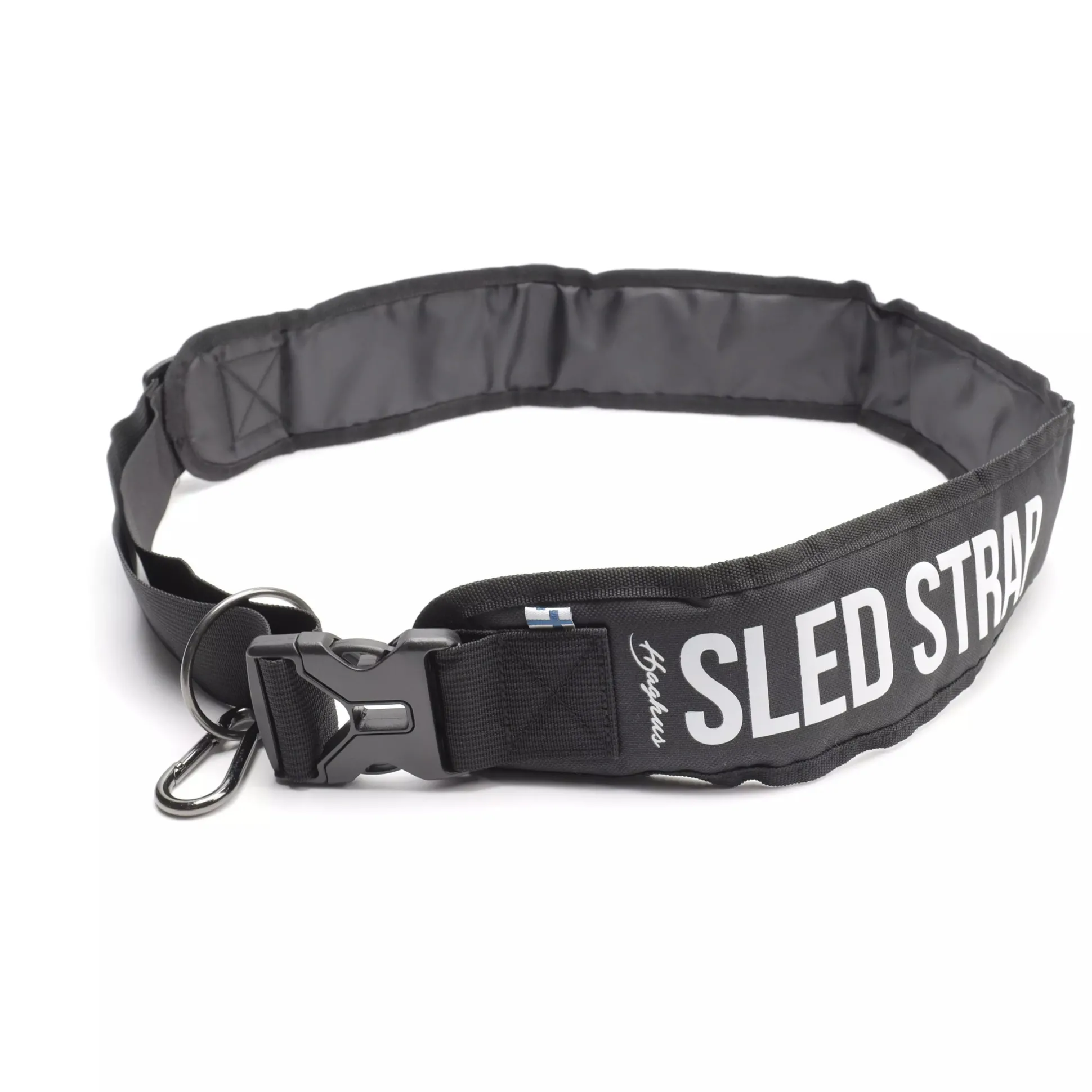 Olkahihna jakaa painon tasaisesti suuremmalle alalle ja näin ahkiota on mukavampi vetää. Karabiinihaka helpottaa ahkion köyden kiinnittämistä. Lenkin avulla ahkion köysi asettuu parhaaseen mahdolliseen vetokohtaan. Säädettävä pituus.