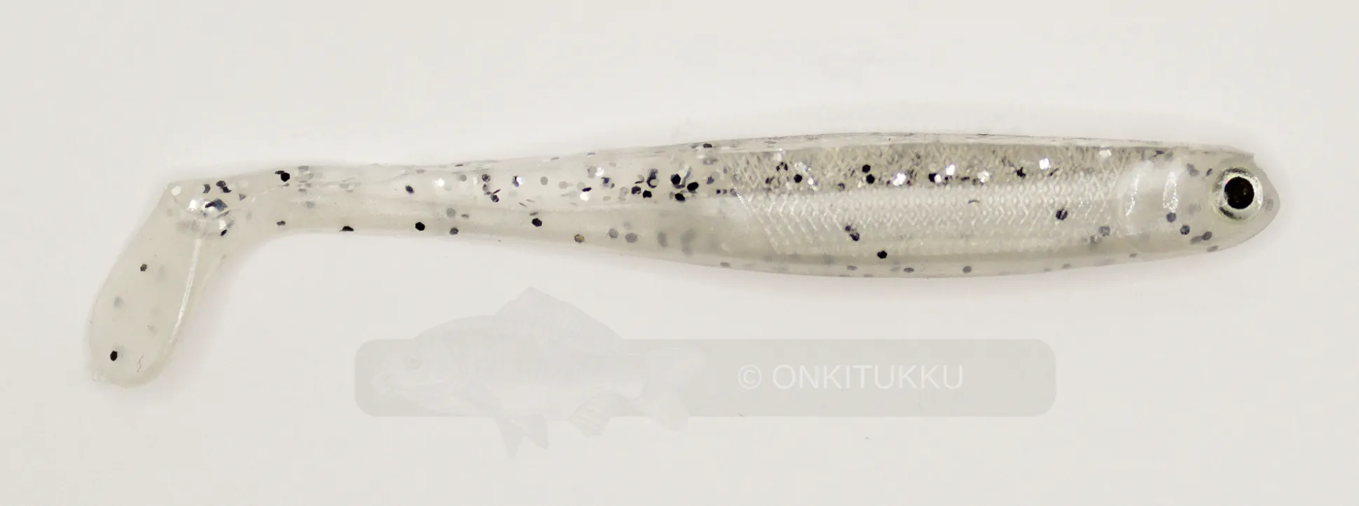 Lapapyrstöinen kalajigi 3D-silmillä. Venyvyys noin 40%. Erittäin hyväksi todettu malli kuhalle ja ahvenelle. Pussissa 4kpl
