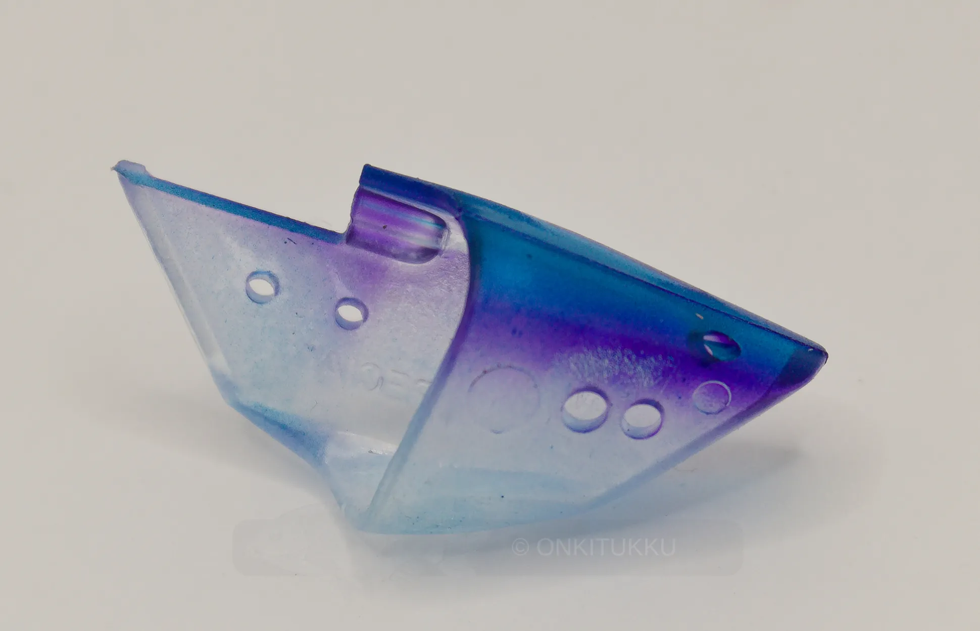 Väri: Kirkas pohja, sininen selkä ja violetit kyljet.