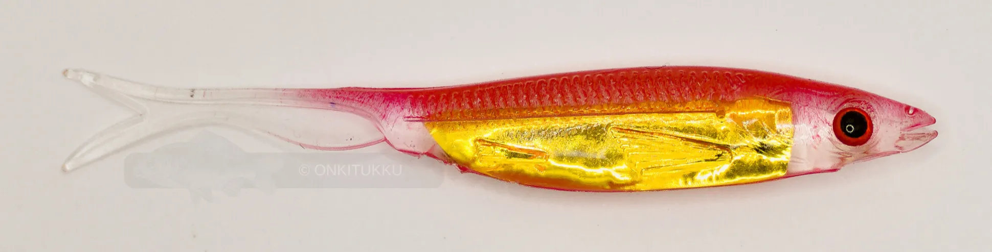 Erittäin tehokas haarapyrstöinen kalajigi, jonka sisällä on kiiltävä kultainen foliolevy joka lisää jigin houkuttelevuutta. Toimii erittäin tehokkaasti drop shot jiggauksessa. Toimii hyvin hauen, ahvenen ja kuhan kalastukseen.