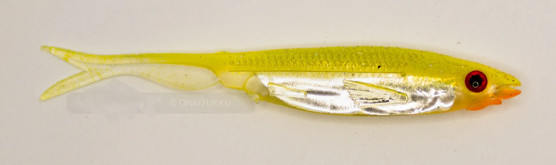 Erittäin tehokas haarapyrstöinen kalajigi, jonka sisällä on kiiltävä kultainen foliolevy joka lisää jigin houkuttelevuutta. Toimii erittäin tehokkaasti drop shot jiggauksessa. Toimii hyvin hauen, ahvenen ja kuhan kalastukseen.