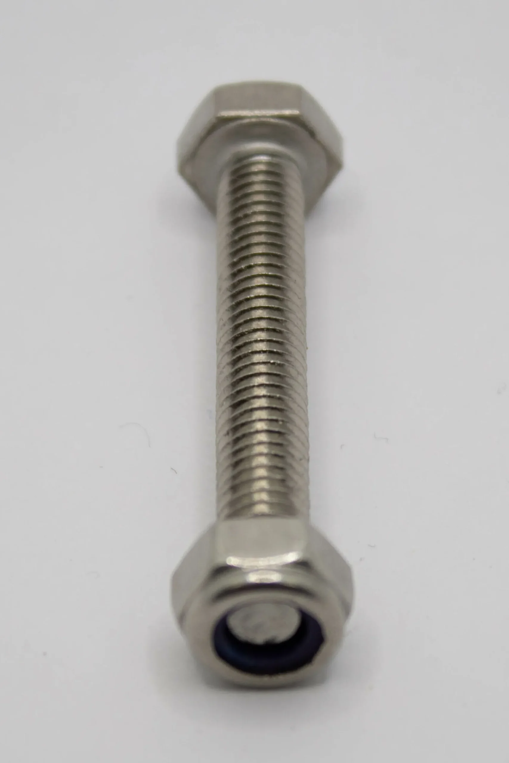 Haponkestävä kuusioruuvi M6 40mm, lukitusmutterilla. Ei syövytä metallia haponkestävyyden ansiosta. Sopii Heinolan kairoihin.