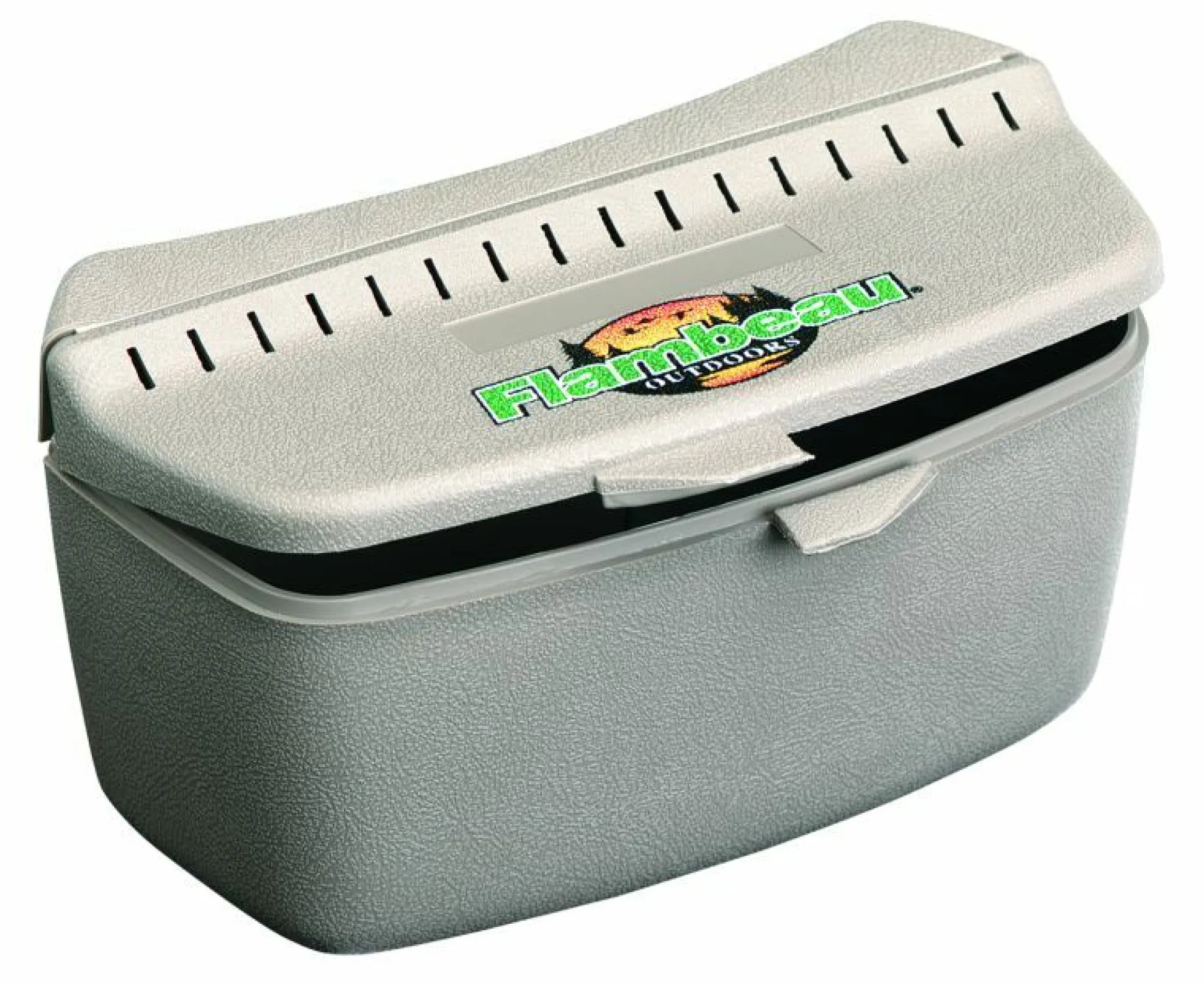 Harmaa toukkarasia jonka takapuolella lenkit vyön läpiviemiseksi. Lenkkien läpimahtuu 2,5 tuuman(6,5) kokoinen vyö. Rasian mitat ovat: 178x107x88mm