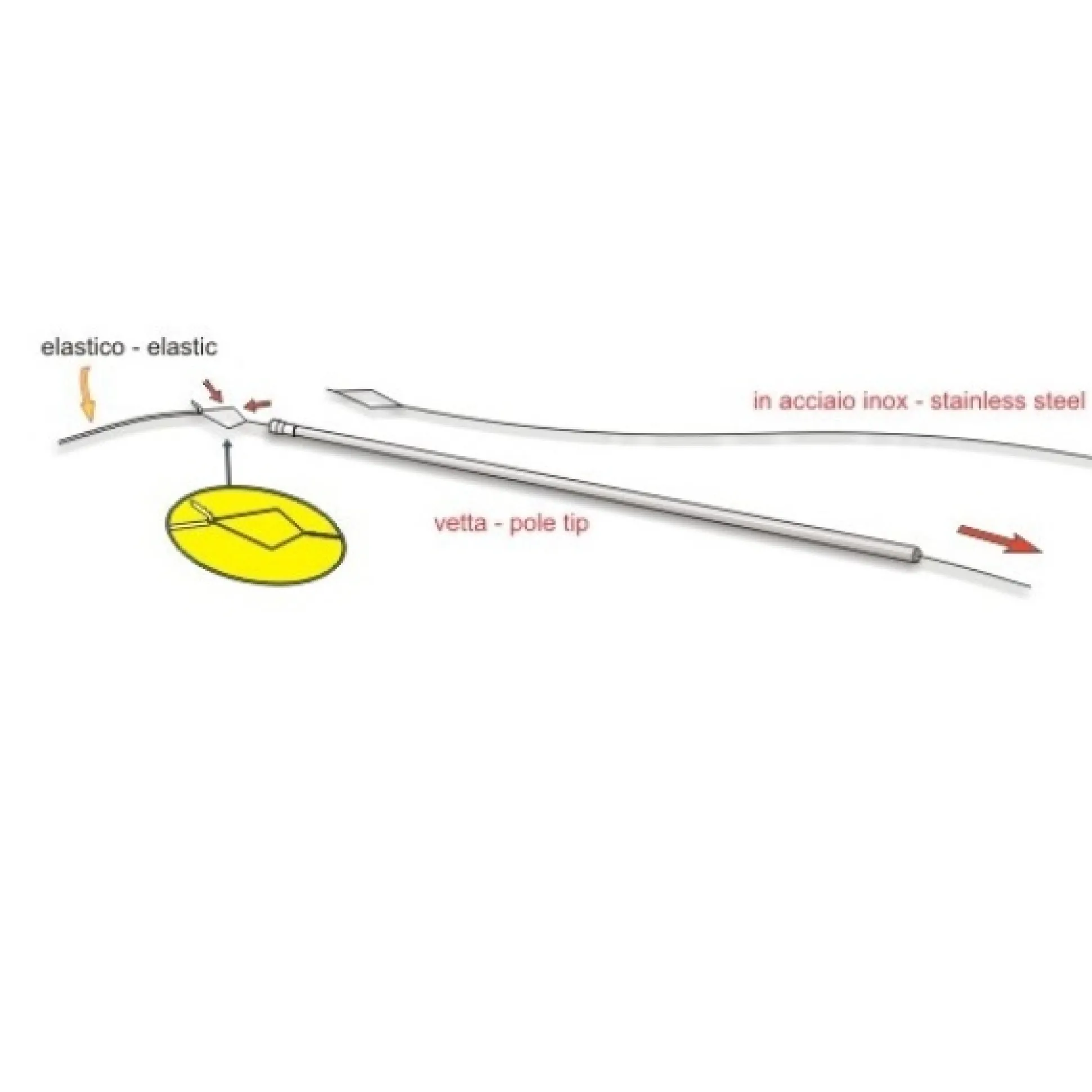 Ruostumattomasta teräksestä valmistettu pujotuslanka jonka avulla saat joustin-nauhan helposti vedettyä partti-kärjen läpi. Pituus 150 cm