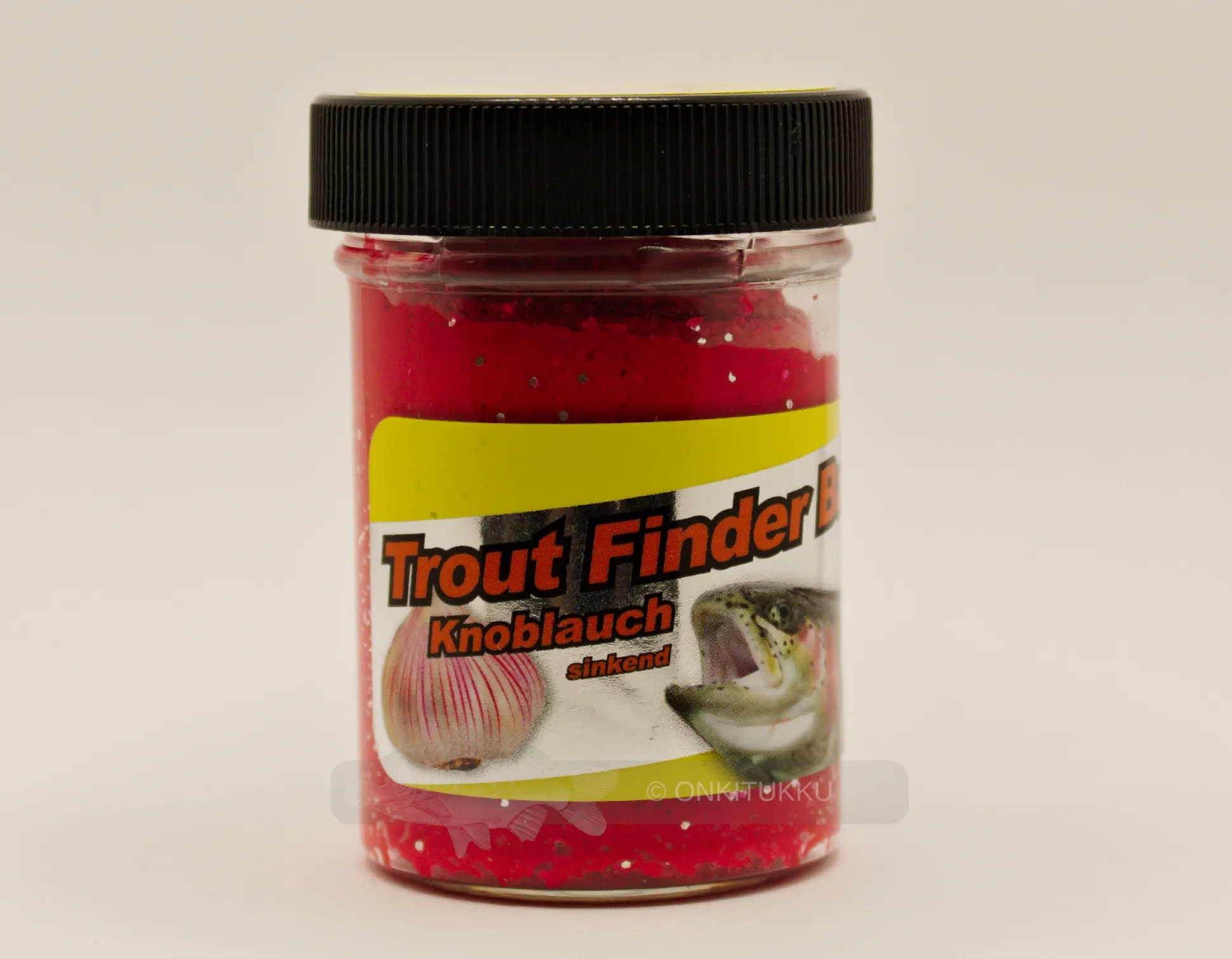 Tehokas uppoava kirjolohitahna, joka on niin tahmea että se pysyy ohuemmissakin koukuissa. Pinkki ja hopeahile. Tahna on pilaantuneen valkosipulin makuinen ja hajuinen tahna sisältää hileitä, jotka vähitellen irtoavat koukusta ja luovat houkuttelevan kimalluksen, kun ne leijuvat kohti pohjaa. Purkissa on 75g.
