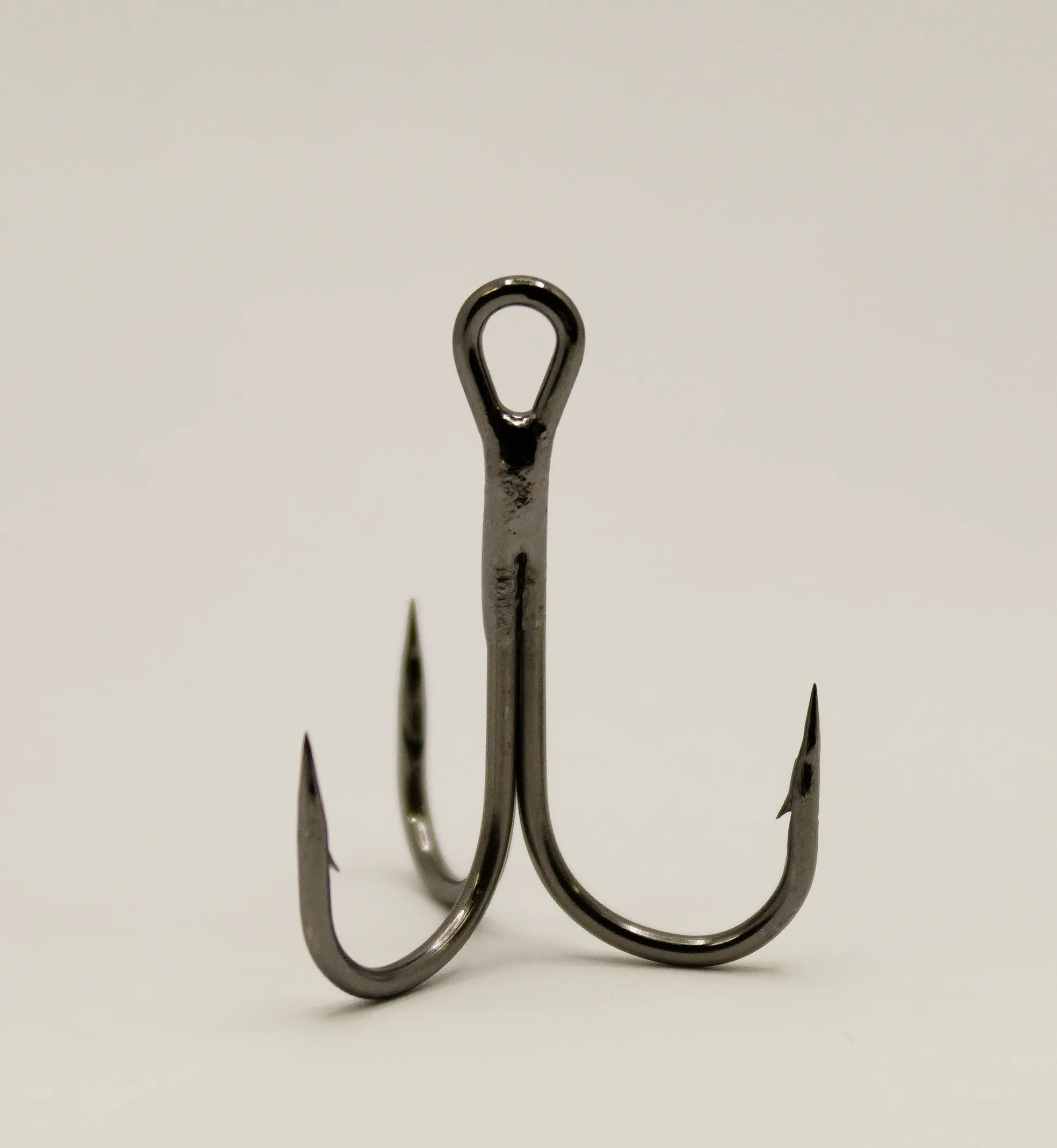 Hiiliteräksinen musta nikkeli kolmihaarakoukku.