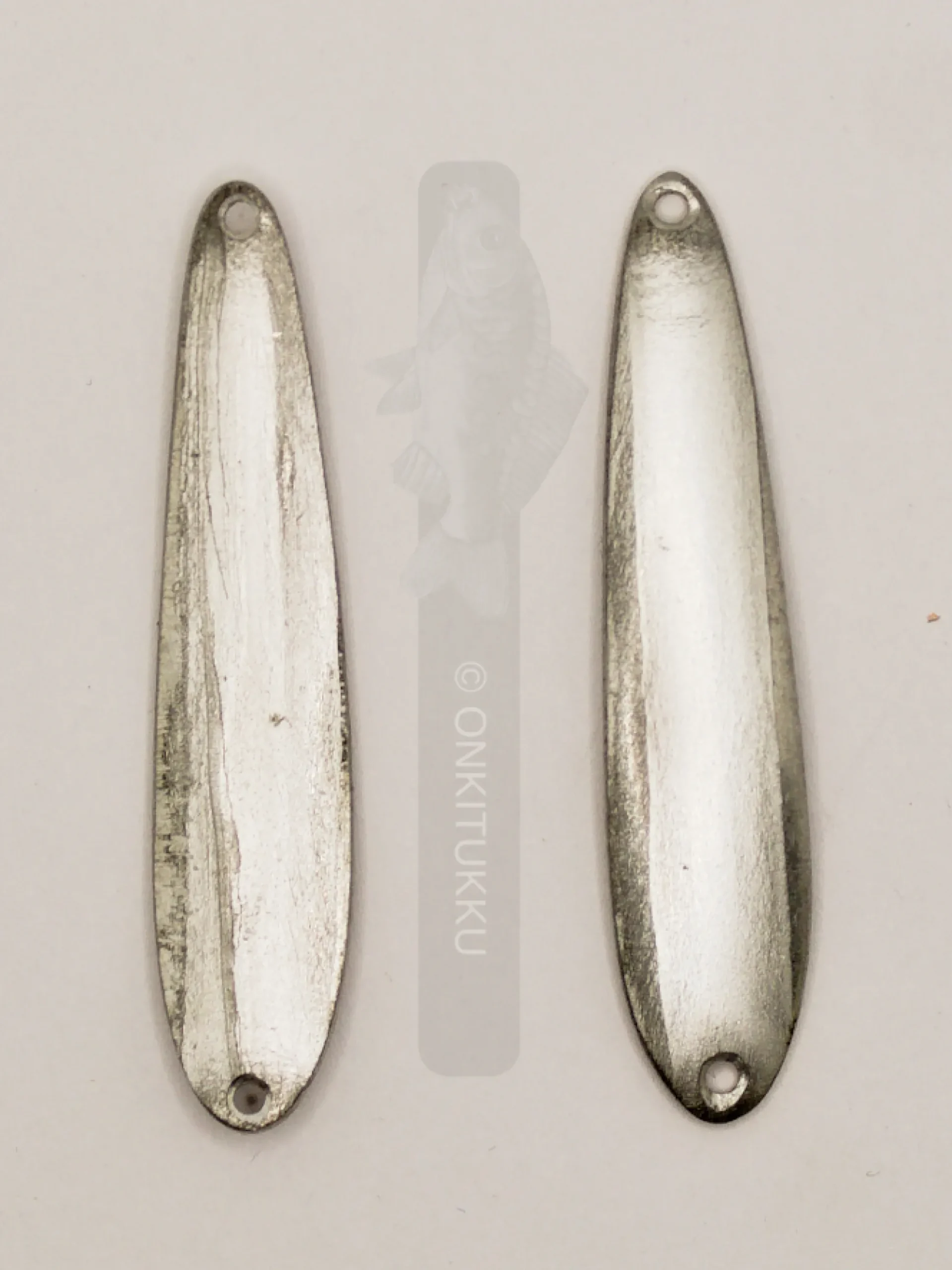 Hyvin kalastava alumiininen kuhapilkki, pilkkiä on hieman taivutettu paksummasta päästä.