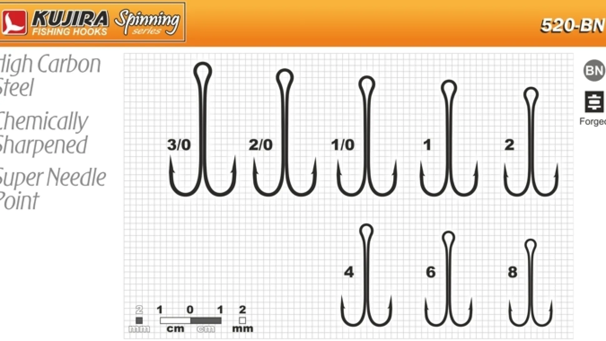 Aukinainen kaksihaarakoukku. Valmistettu hiiliteräksestä ja kemiallisesti teroitettu. Väri on musta nikkeli.