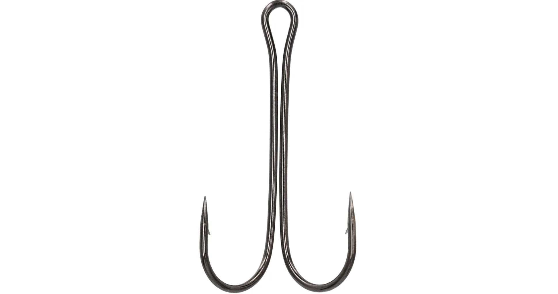 Aukinainen kaksihaarakoukku. Valmistettu hiiliteräksestä ja kemiallisesti teroitettu.