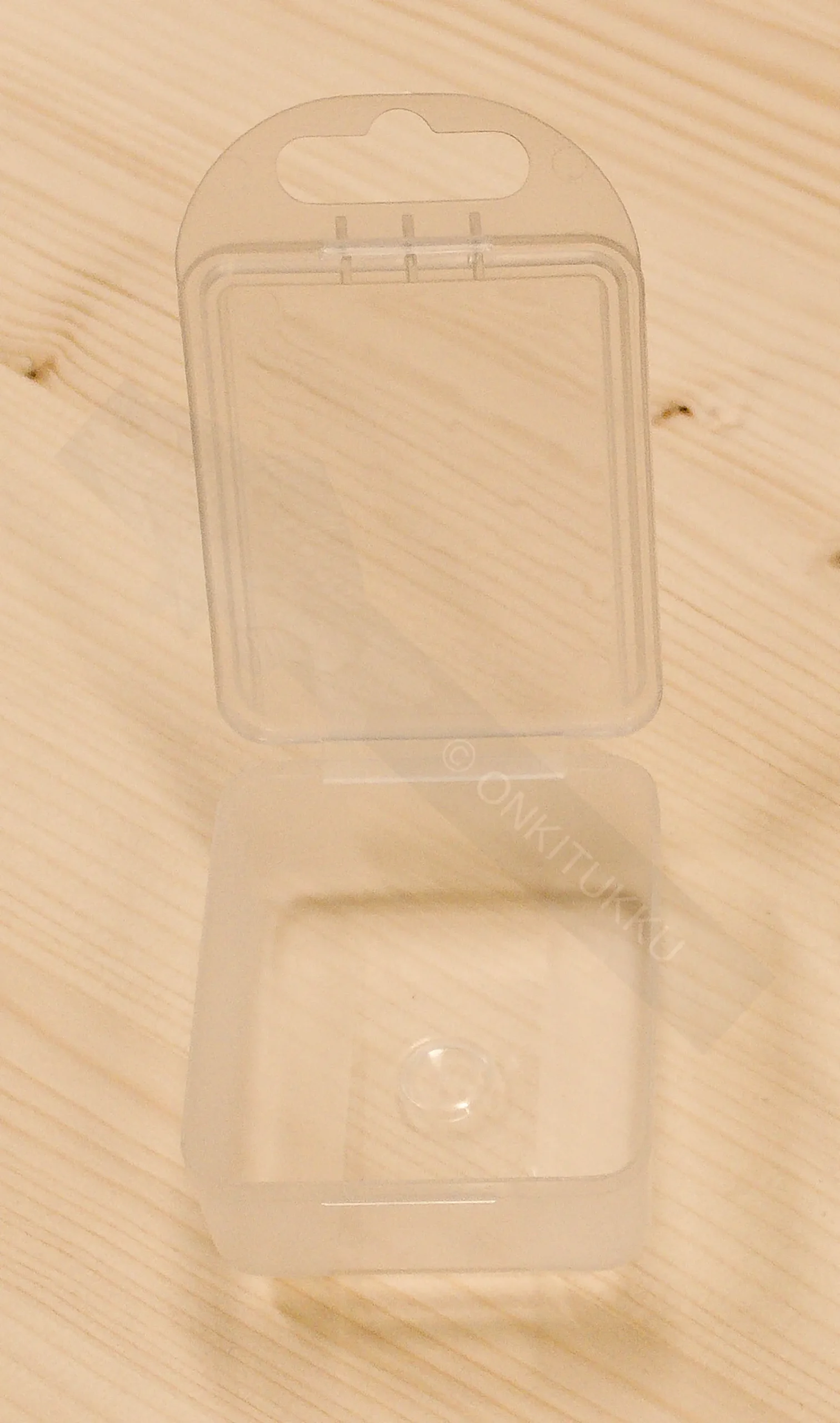 Pieni tarvikerasia. Mitat 6x5x2,5cm Ulkomitat 8,5×5,5,2,7cm