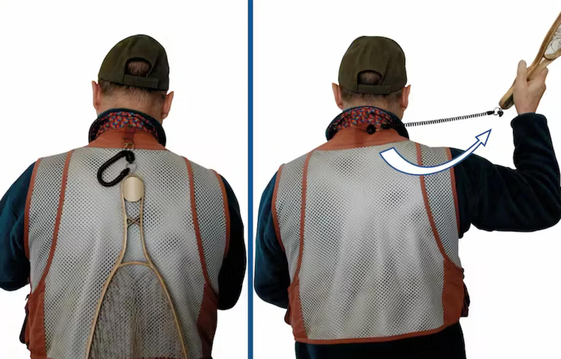Tällä haavinvapauttajalla on haavi helppo kiinnittää kahluutakin tai kahluuhousujen selkään ja ottaa käyttöön helposti nykäisemällä. Venyy jopa 130cm asti.