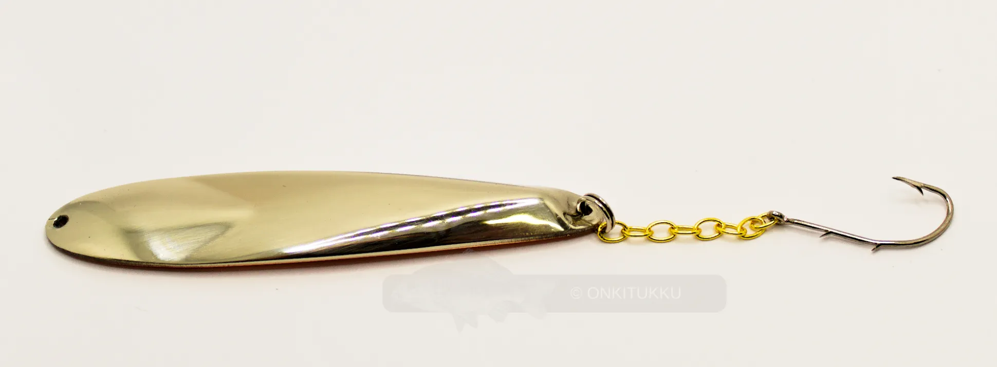 Suomi-pilkistä on tullut monen kuhapilkkijän vakioviehe. Pilkissä on vakiona kirkas ketjukoukku, jota kannattaa vaihtaa värikoukkuun. Puustjärvi on valmistanut pilkkejä jo 50-luvulta asti.