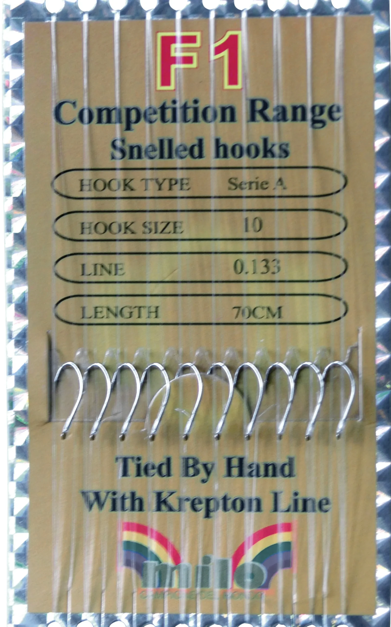 Perukkeet on sidottu Milon Krepton siimalle. Koukku on isokitainen lapiopäinen Series A . Pakkauksessa on 10 peruketta.